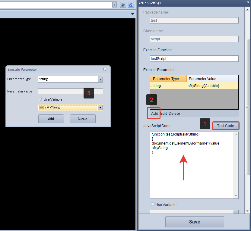 3. Click on the Add button(2) to add the variable. Then in the window that appears, select the variable(3).