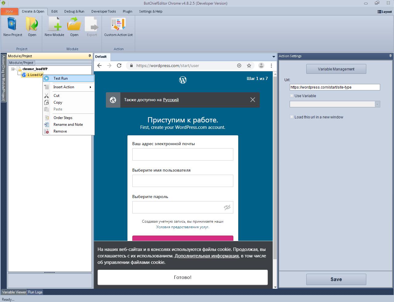 I'm trying bot auto signup wordpress.com. But can't load site when input infomation! Error in Step 2