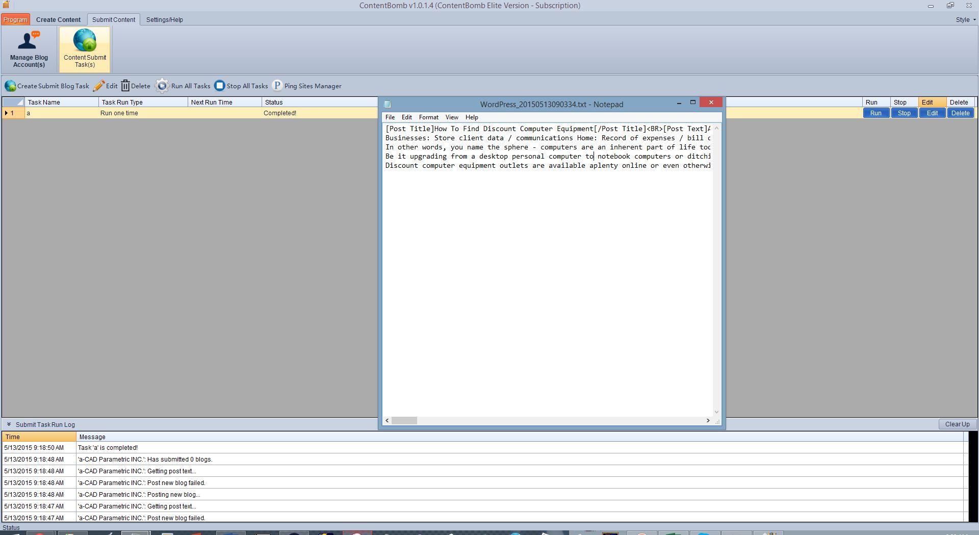 5/12/2015 10:37:30 AMTask 'TEST' begin to run...