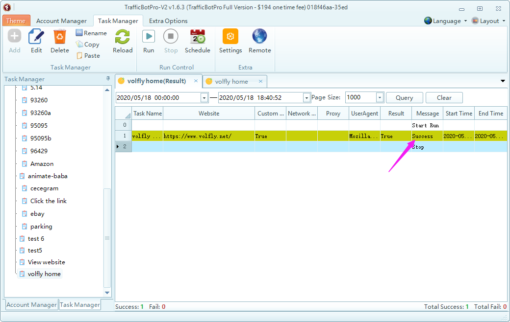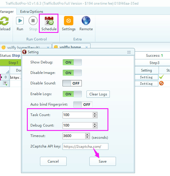 Thank you but when I set the task count to be larger it only runs one task! the other its on waiting mode! also google analytics doesn't see any new traffic on my page. Why is that?