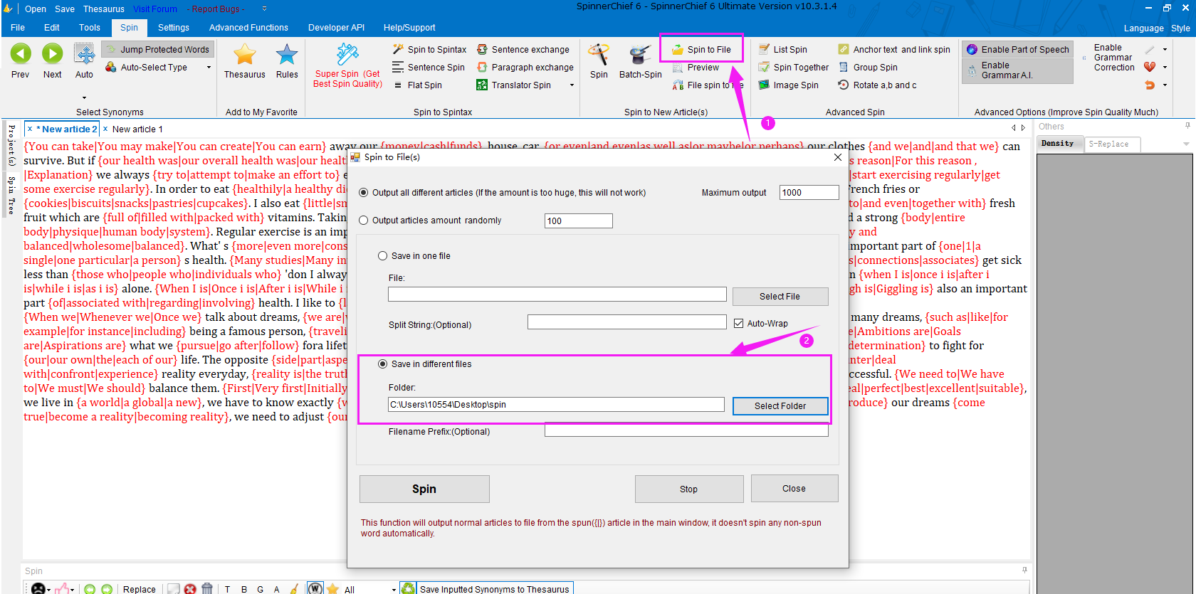 If you wanna spin many txts at the same time, you can use one of the following ways: