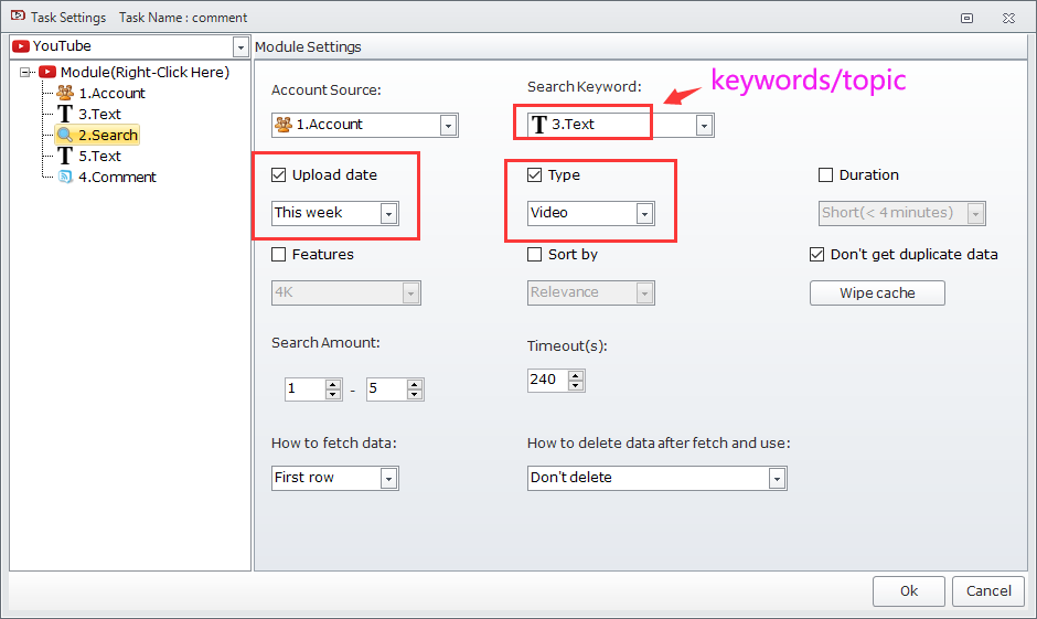 Im very interested in all the features, but I have one question. Is there a way to comment on all recently uploaded videos under a certain topic (with your main account to attract traffic).