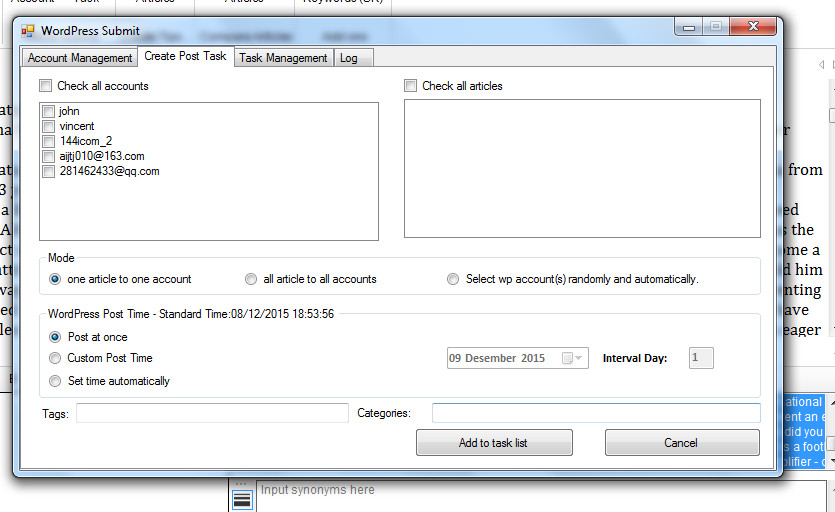 i want to submit my articles to my wordpress blog automatically and scheduled.