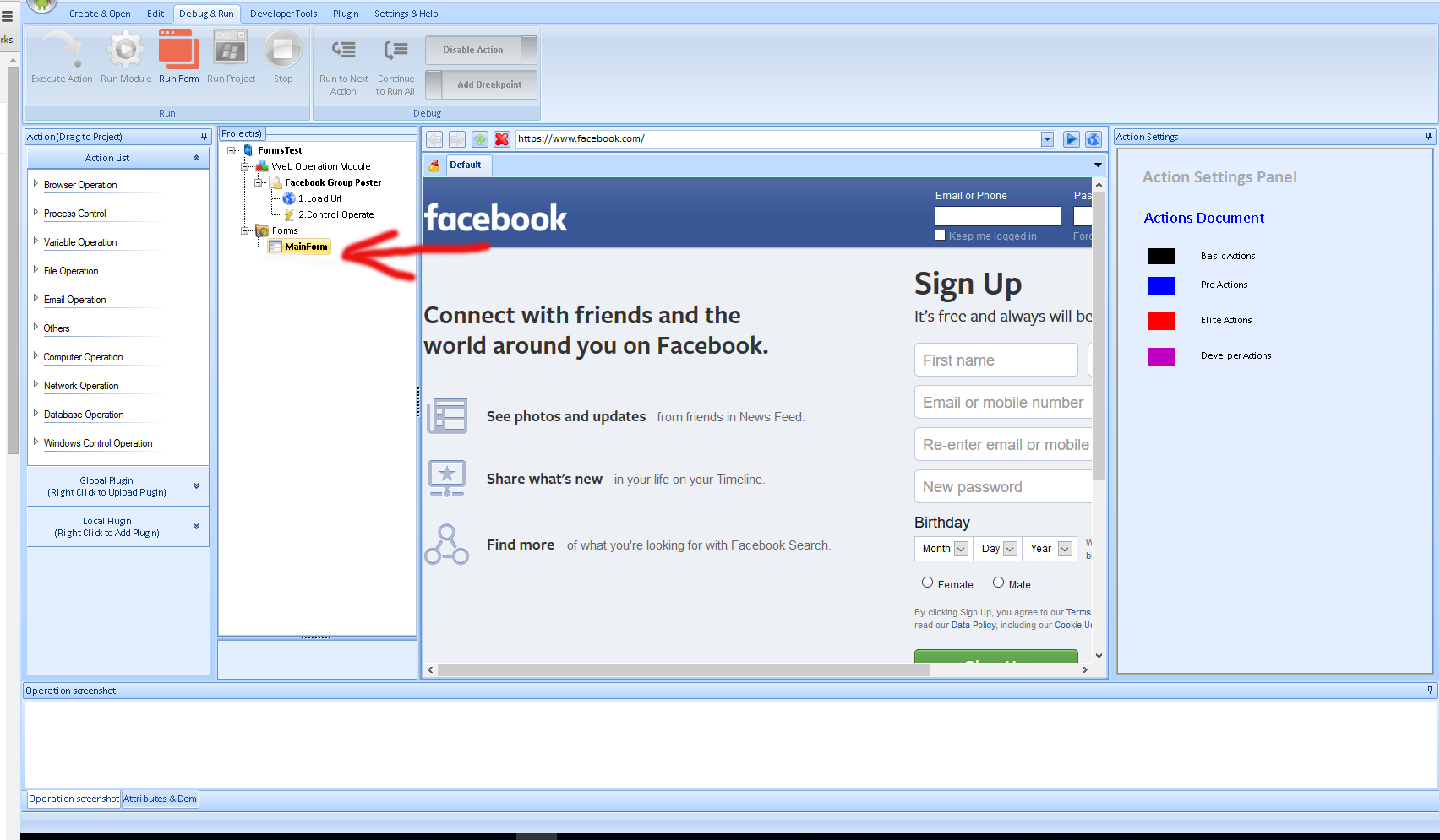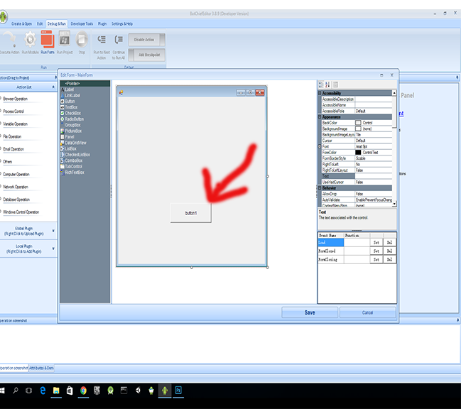 Hi I have attached some screenshots. I already know how to use forms in the browser. I want to know how do you make a button on the form below work with a module. Let's say that I want that button to open up a web browser when it is clicked.