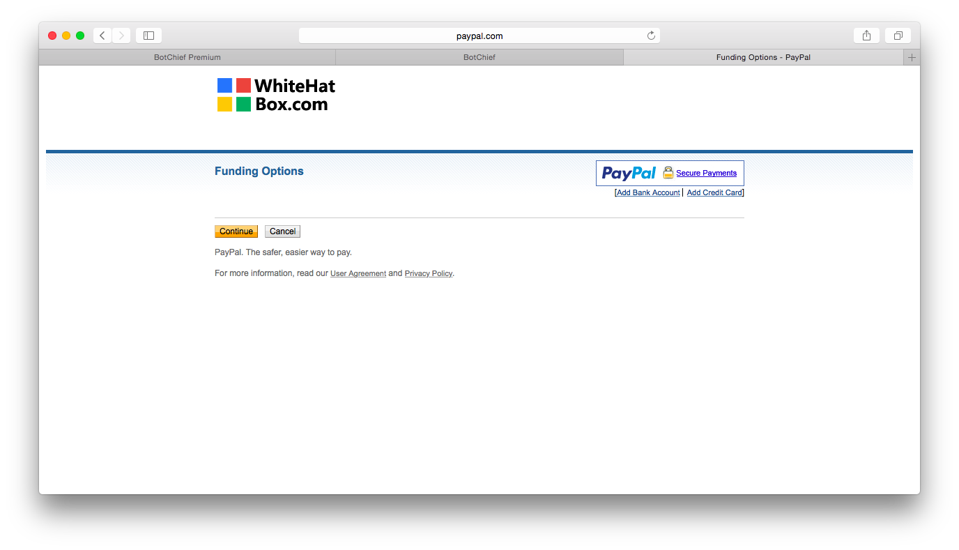 Hello, cincoshot you mean you cannot pay for botchief? Can you send the screenshot to us?
