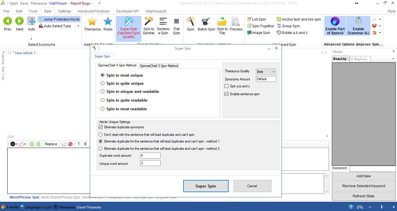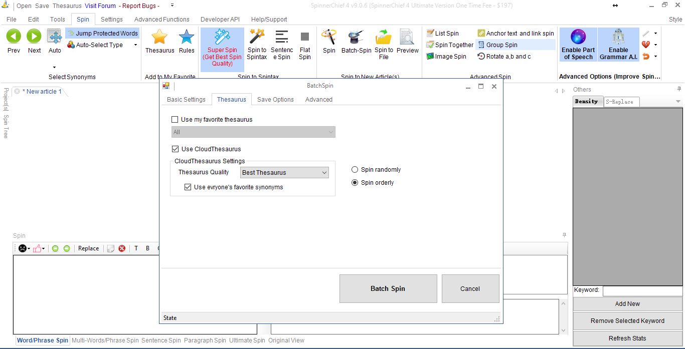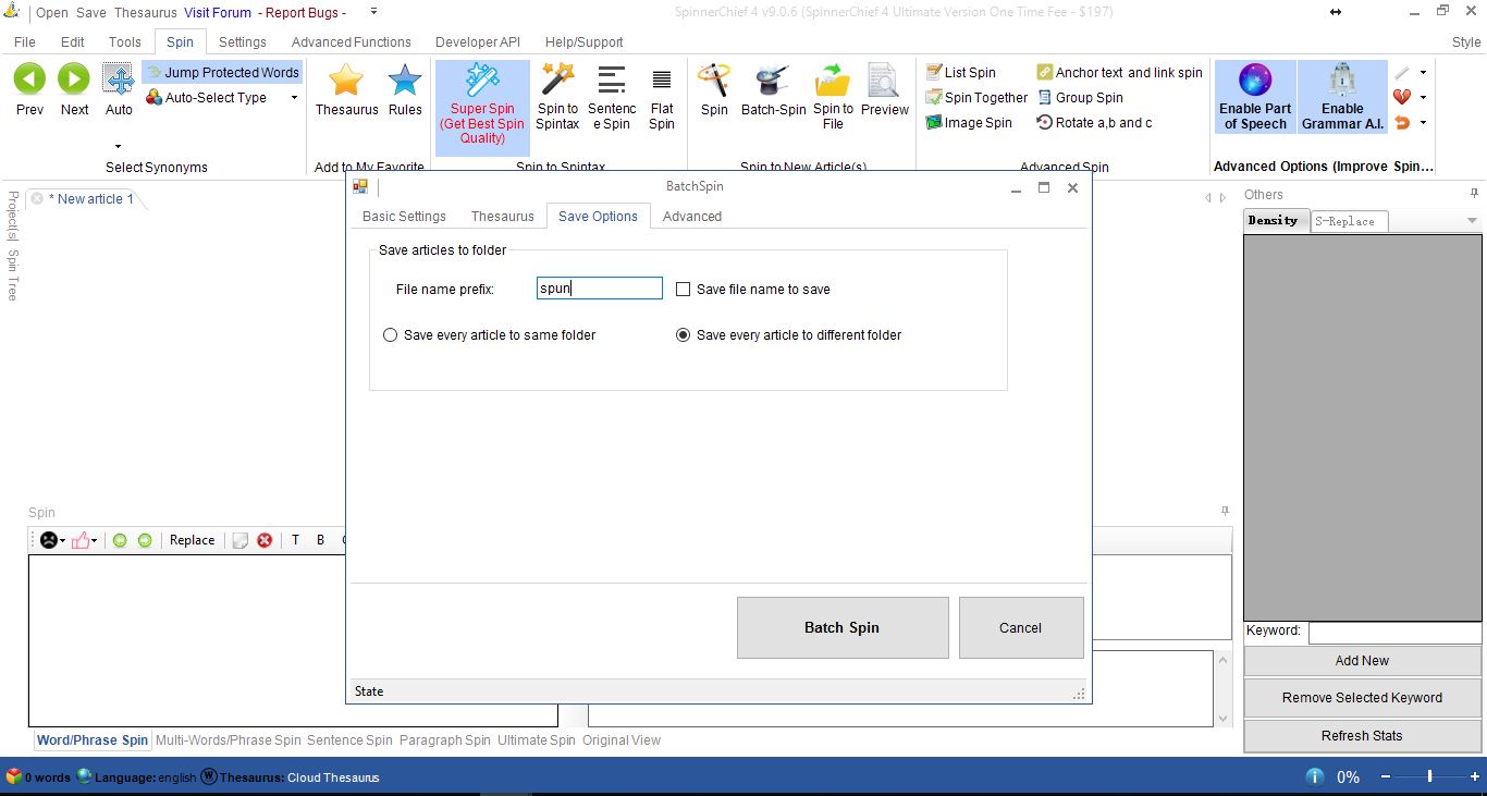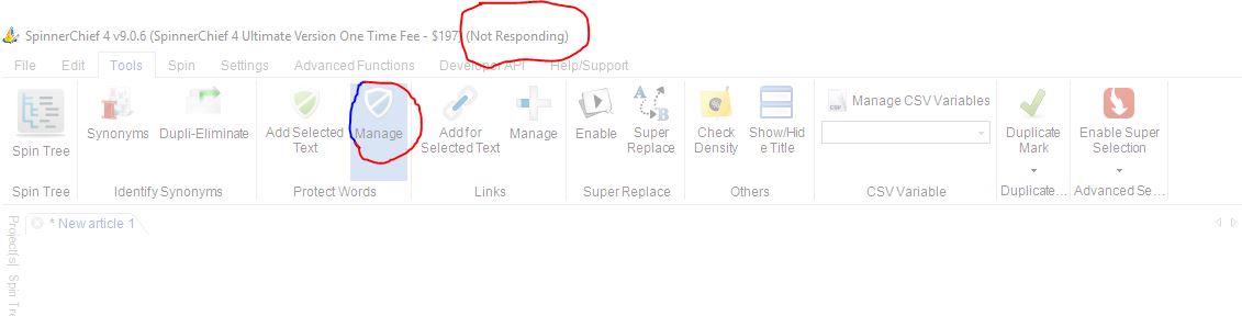 2) Spinnerchief is not responding most of the sometimes while adding protect words. The snapshot 2 is attached.