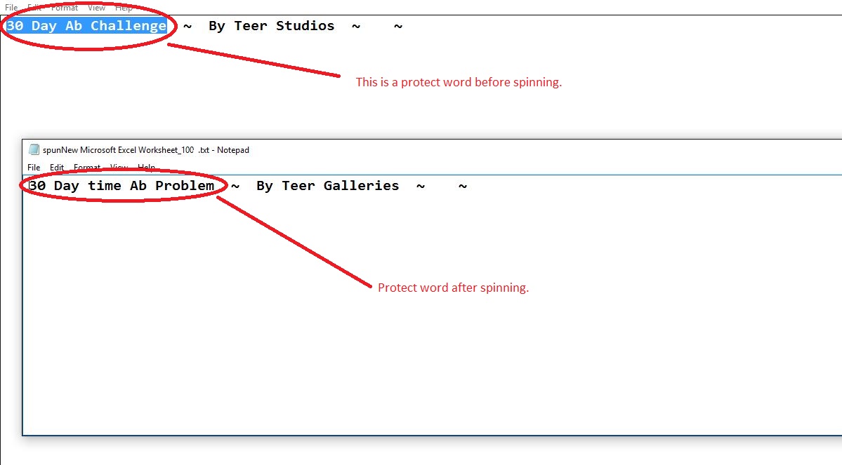 1) Spinnerchief is spinning the protect words. Snapshot 1 is attached.