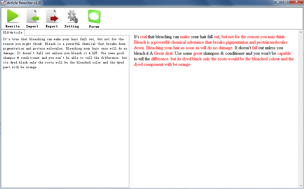 to rewrite your article by one click. It use SpinnerChief API to replace your article, you can register an free
