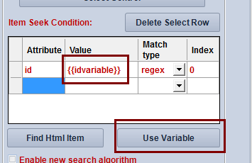 For example, you know about the control option command, scraper, keyboard and mouse emulation, when you click select control and click on a control there are option below "Item Seek Condition:" such name, ids, form, and other attribute, but you can't change the value of the attribute while you playing the bot.