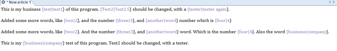 I paste a document into SpinnerChief. I select Tools > Synonyms to identify all known synonyms.
