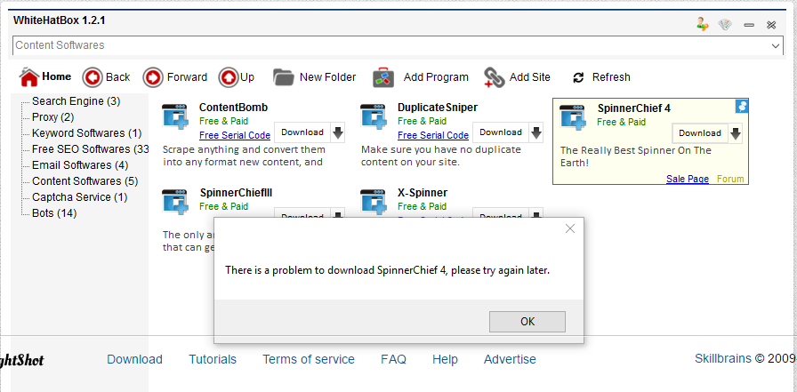 Actually, it was installed on my computer, but suddenly it is showing download spinnerchief 4. But when going to download it is showing: "There is a problem to download SpinnerChief4, Please try again later!"