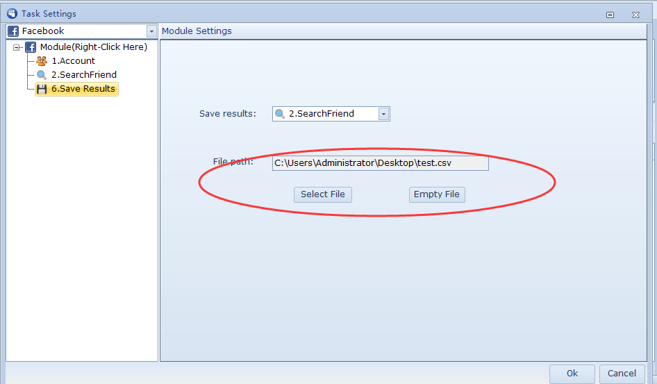 If you want to quickly search out all of your facebook friends, you can create one task first to search all friends.