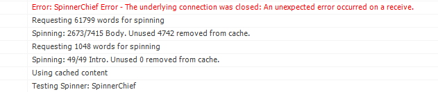 Hi, I am receiving this error when I use SpinnerChief with SEO Content Machine: