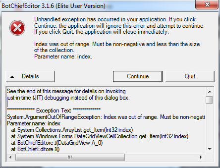 System.ArgumentOutOfRangeException: Index was out of range. Must be non-negative and less than the size of the collection.