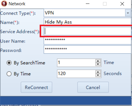 If you have "VPN", click the "ReConnect" button in the main form, then you can enter your VPN login in details.