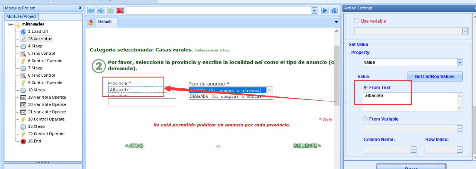 Antoher question is how can I click on the "siguiente" image which it's an input but triggered by javascript once select option is selected.