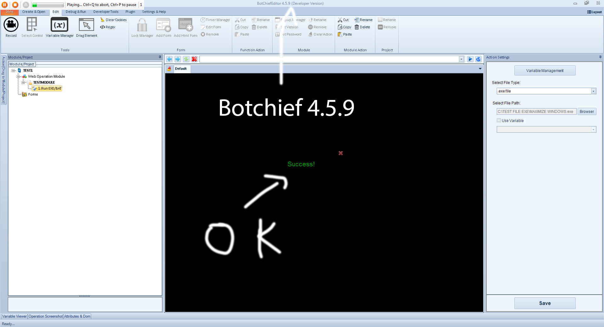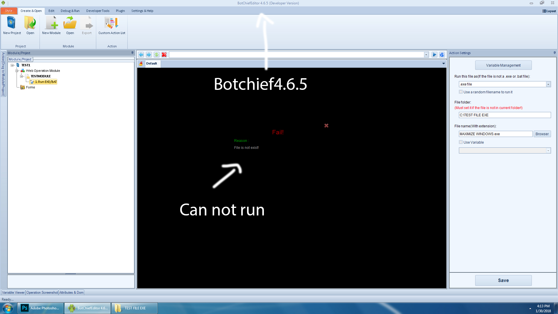 I can not Run exe File after update botchief From 4.5.9 to 4.6.5. Please give an Example for this action