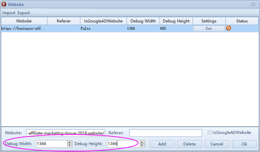 Please use the multiple url function to setup the settings. And edit the size of the debug window to be larger to confirm the ads can be shown up.