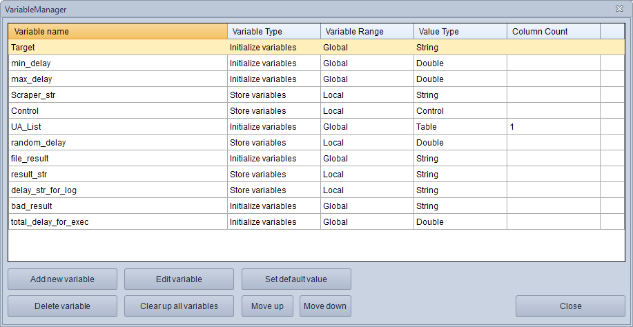 The new version has buttons Move up and Move down. Using them you can sort the variables in the order that is convenient for you. Like this:
