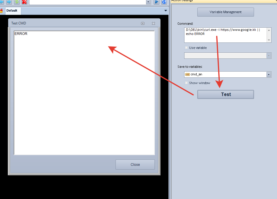 If the CURL returns an error during operation (for example, if the site does not exist), then the CMD output in BotChief Editor will be empty.