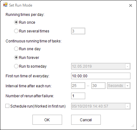 Send a screenshot of the Set Run Mode window and a screenshot of the log.
