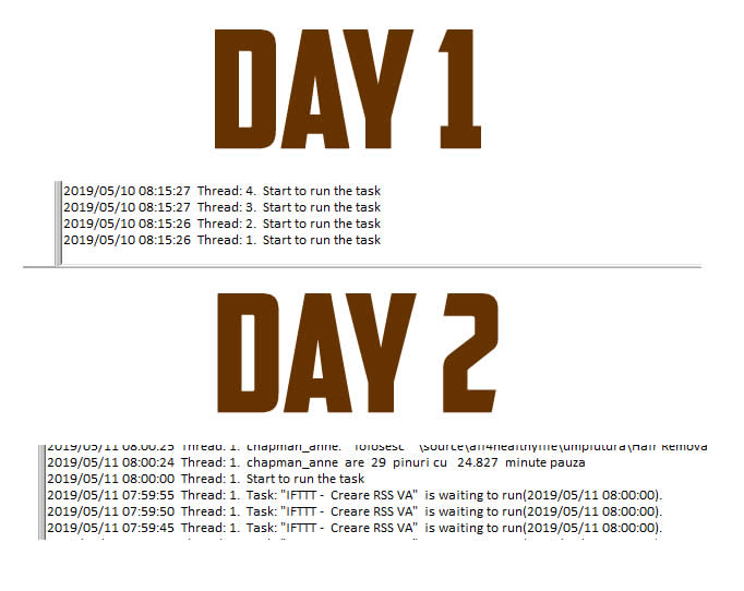 As you see, on the first run all threads start bunt on netxday ( second run) just one starts.