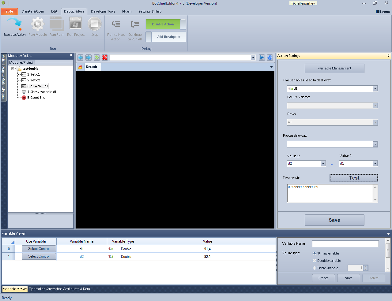 When working with variables that contain fractional values, I get strange results. I made a small test module, where the same situation.Test for 92,1 - 91,4:...