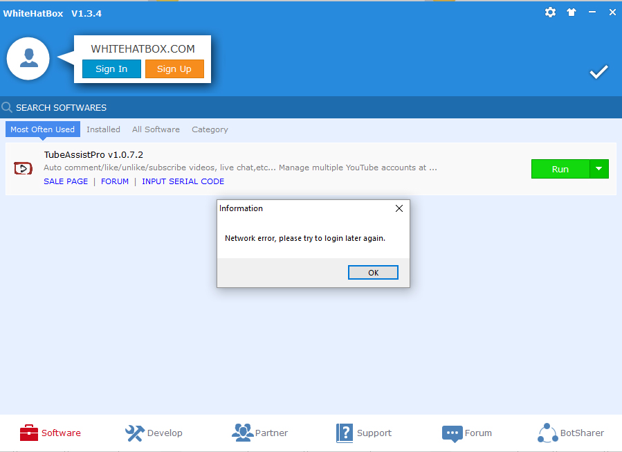 Hi Support,After I had my account on the software, and Press the Start Button to check the Account, the debug window opens and showing the "Network Error".and also in my C:\Program Files...