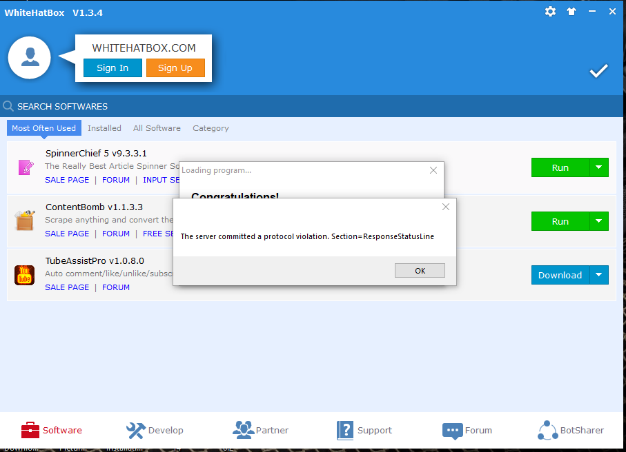Error message: "failed to obtain download address"Trying to download Spinnerchief from whitehatbox.
